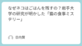 雑学 なぜネコはごはんを残すの?岩手大学の研究が明かした「猫の食事ミステリー」