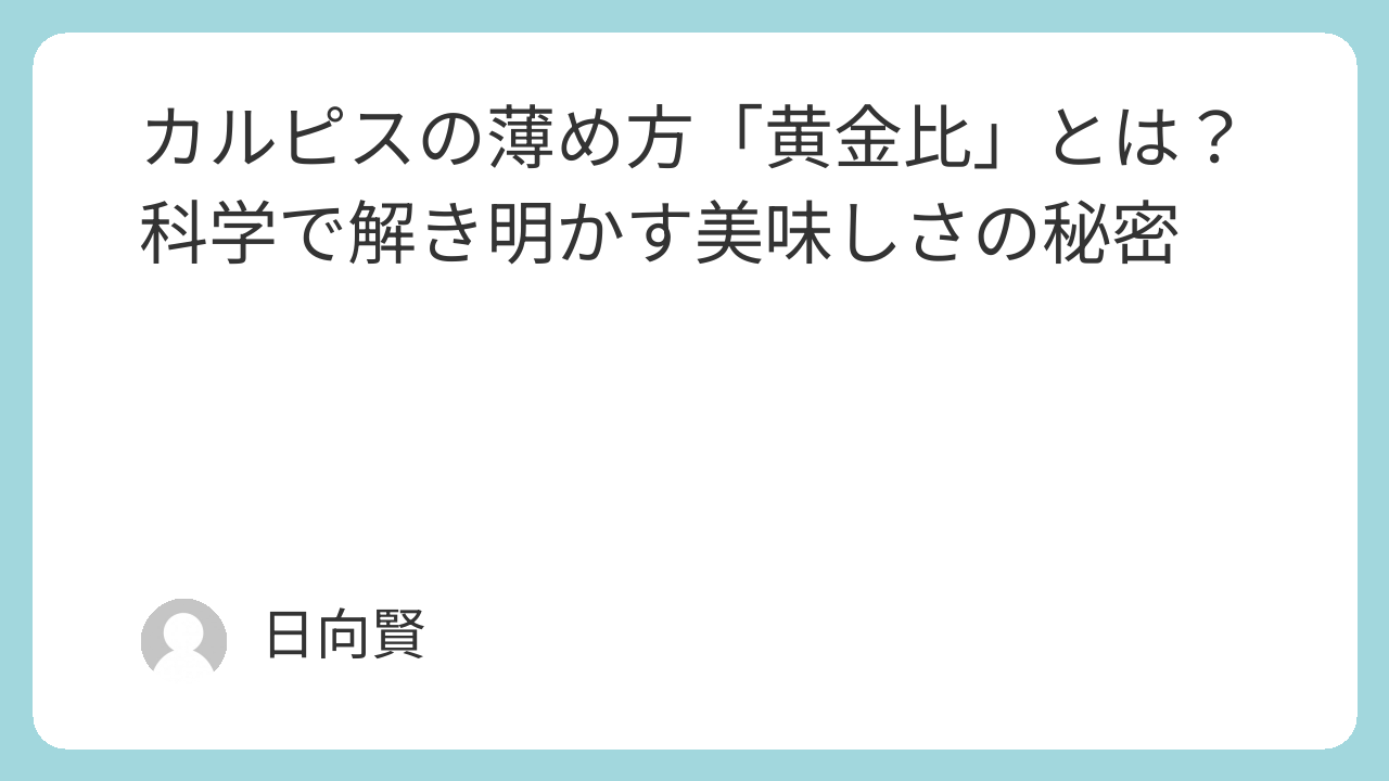 カルピスの薄め方「黄金比」とは?科学で解き明かす美味しさの秘密